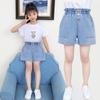 Roupa Infantil Shorts Jeans com Laço para Meninas Novo Estilo Coreano Verão Infantil Roupa Exterior Casual Hot Pants para Crianças Médias e Grandes Transfronteiriço