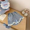 Calça-saia de verão nova estilo coreano para meninas, Jeans plissados da moda estilo coreano, imitando duas peças, para bebês meninas