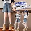 Shorts Femininos 2025 Verão Novos Shorts Jeans para Crianças Mais Velhas, Calças Soltas Elegantes e da Moda para Vestuário Exterior