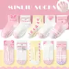 Meias de bebê estilo coreano, faixa de cabelo, caixa de presente, primavera e outono, meias de chão, recém-nascidas, meninas, bebê, verão, finas, princesa, meias curtas, antiderrapantes