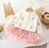 Jaqueta Infantil Jacquard Morango Outono e Inverno Categoria a Cardigan de Tricô Infantil Xale Pequena Princesa Cardigan de Bebê