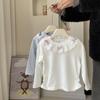 Ins outono e inverno baby pit bordado boneca colarinho assentamento camisa menina de manga comprida t-shirt top underwear bottoming camisa
