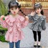 Camisa xadrez de boneca de orelha para meninas, camisa estilo ocidental para bebês, camisa estilo coreano infantil, primavera, novo estilo, celebrante da Internet