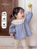2026 Nova Camisa de Bebê Menina Estilosa Primavera com Gola Pétala Respirável Classe A Acabamento em Renda Amigo da Pele