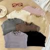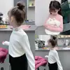 Sem Devoluções, Sem Trocas Camiseta Estilo Coreano para Meninas 2026 Nova Primavera Bebê Elegante Gola de Renda Base Canelada Camiseta