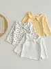 2026 Primavera e Outono Novo Estilo Camiseta Bebê Estilo Coreano Meninas Bebê Gola de Renda Manga Longa Camisa Boneca Cor Sólida Camiseta