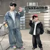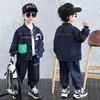 Roupas infantis de outono de 2023 no novo conjunto de duas peças de manga comprida para meninos, estilo jeans, maré primavera e outono, uma geração de cabelos