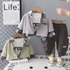 Roupas infantis atacado crianças cavalheiro três peças roupas para meninos primavera e outono camisa de manga comprida colete calças roupas masculinas tesouro