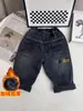 Calças forradas de lã para meninos outono e inverno 2025 novas calças jeans infantis de inverno de lã peça única bebê perna reta calças compridas tendência