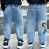 Calças para meninos primavera e outono novas calças jeans infantis all-match estilo ocidental calças jeans soltas bonitas para pais