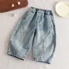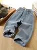 Calça jeans da moda para meninos 2023 primavera e outono nova versão coreana de calças de rua fritas bonitas e rufiãs infantis calças de bebê comércio exterior