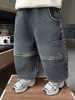 Jeans Masculinos Outono 2025 Novo Estilo de Rua Moderno Calças Infantis Calças Longas Estilosas