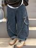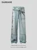 Jeans High Street Americano Calças Retas Casuais para Meninos Primavera e Verão 2025 Marca Tendência Lavado Azul Calças Jovens