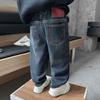 Calças jeans para meninos primavera e outono 2024, novas calças soltas infantis, calças casuais bonitas para meninos, outono, todas as combinações