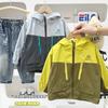 Jaqueta Infantil com Capuz Color Block 2025 Outono Nova Jaqueta Outdoor Casaco Infantil Tendência de Moda