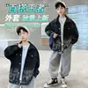 Gola de Lapela 2025 Crianças Grandes Estilo de Rua Primavera e Outono Jaqueta Jeans para Meninos Nova Gradiente Tendência Roupas Infantis