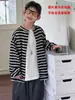 Jaqueta de Algodão Little Shop para Meninos Infantil Primavera/Verão Estilo Coreano 2026 Nova Primavera Listrada Gola Redonda Tricô Roupas Infantis Top Tendência