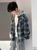 Casaco Masculino Primavera 2026 Novo Estilo Primavera Meninos Crianças Grandes Tendência Legal Bonito Com Capuz Top Camisa Xadrez Infantil