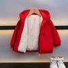 Jaqueta de Fleece Infantil para Meninos Outono e Inverno 2025 Novo Top Elegante Vermelho Versão Coreana da Moda para Meninos