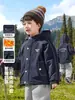 Jaqueta Impermeável com Capuz para Meninos Europeus com Acolchoado de Veludo Inverno 2025 Nova Roupa Infantil Roupa Infantil Tendência