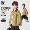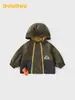 Duo Duo Home Jaqueta Corta-Vento Bordada com Veado para Meninos Estilo Primavera e Outono Cor Blocada Gola Lapela Jaqueta de Trabalho Estilo Celeiro Top Infantil