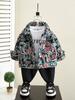 4939 Jaqueta Estilosa para Meninos 2026 Nova Coleção Primavera Versão Coreana Tendência Peça de Roupa com Estampa Floral para Crianças Primavera e Outono