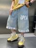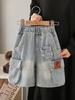 Shorts Jeans Masculinos Verão 2025 Novos Calças Finas de Cinco Pontos para Crianças Calças Streetwear da Moda para Crianças Mais Velhas Roupa de Verão de Comprimento Médio