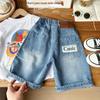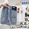 Calças de Bebê Verão Finas Shorts Jeans 2025 Bonito Moderno Legal Meninos Verão Calças Cinco Pontos Calças de Verão de Comprimento Médio Infantil