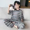 Conjunto de Pijama de Verão com Manga Curta para Meninos 2026 Novo Estilo Tamanhos Médio e Grande Crianças Meninos Finos Crianças Estilosas Roupa de Casa Listrada