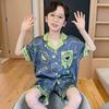 Pijama Nova de Verão para Meninos Seda Gelo Cetim Manga Curta Fina Infantil Menininho Desenho Animado Roupa Condicionamento de Ar Roupa de Casa