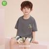 Conjunto de Pijama Infantil de Manga Curta com Estampa de Dinossauro Transfronteiriço para o Verão, Pijama de Algodão e Calça de Pijama para Meninos, Roupas de Casa Infantis Dropshipping