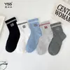 Meias de Verão para Meninos Yi Shuang Shuang Malha Respirável Tendência Marca Bordado Digital Meias de Cano Médio Algodão Penteado Estudante Meias de Malha Sem Costura