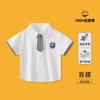Camisa Branca Manga Curta de Algodão Puro para Meninos Estilo Campus Crianças Médias e Grandes Alunos do Ensino Fundamental Uniforme Escolar Estilo Acadêmico Gola