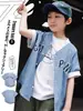 Camisetas Infantis de Manga Curta, Novidades de Verão para Crianças, Tops Respiráveis Listrados para Meninos, Uniformes de Beisebol Infantis, Camisas Cardigan