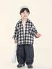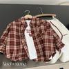 Camisa para Meninos Primavera Camisa Xadrez Estilo Ocidental Infantil 2024 Novo Estilo Masculino Médio e Grande Top Casaco de Primavera Na Moda