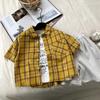 Camisa Infantil de Manga Curta 2025 Nova Chegada Verão Camisa de Manga Curta Xadrez Fina Infantil para Meninos Estilo Western para Crianças Pequenas e Médias Tendência