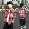 Camisa Masculina Manga Longa Primavera e Outono Camisa Xadrez 2024 Novo Jaqueta Estilo Coreano para Meninos Infantis Cardigã Loose Top