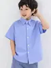 Camisa Azul de Manga Curta para Meninos, Verão, Fina, Algodão Puro, Infantil, para Crianças Maiores, Meninas, Desempenho de Mesa, Uniforme Escolar para Alunos do Ensino Fundamental