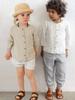 Camisa de Râmia de Manga Comprida com Botões Simples para Crianças, Top Solto de Cor Sólida para Primavera e Outono, Camisa Interna de Linho Tencel com Gola Redonda para Meninos e Meninas