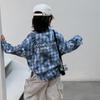 Camisa xadrez primavera infantil 2024 casaco fino dos meninos lapela tie-dyed lapela top roupas dos meninos