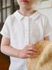 Camisa Branca de Manga Curta para Estudantes Meninos e Meninas Verão Fina Gola Redonda Colarinho Pontudo Camisa Branca Roupa de Apresentação Uniforme Escolar Infantil