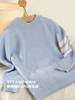 Suéter infantil de lã de cor sólida, forrado com lã, tamanho médio, para meninos, outono e inverno, estilo coreano