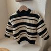 Suéter Infantil 2025 Outono e Inverno Novo Estilo Tricotado Gola Polo Estilo Coreano Suéter de Lã para Meninos Top Casual Versátil