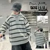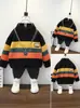 Suéteres Masculinos 2024 Outono e Inverno Novo Estilo Coreano Masculino e Feminino Bebê Listrado Cor de Contraste Suéteres Tops Gola Redonda Espessos Modernos