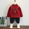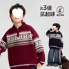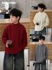 Suéter Vermelho para Meninos Tricotado Espesso Pulôver Camada Base para Meninos Top Pulôver Infantil Inverno 2025 Ano Novo Roupão de Batalha