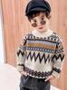 Suéter Infantil 2025 Crianças Outono e Inverno Novo Estilo Engrossado Masculino Médio e Grande Infantil Tricô