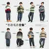 6774 Meninos Listrado Suéter Outono e Inverno Bebê Engrossado Malha Suéter 2024 Novo Inverno Infantil Top Trendy
