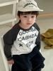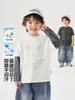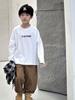 Camiseta Infantil em Vários Tamanhos, Nova Outono e Inverno 2025 Estilo Coreano Camiseta Simples com Blocos de Cor e Letras para Meninos, Camiseta Básica Espessada