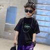Camiseta de algodão de manga curta para meninos europeus e americanos, tamanho pequeno e médio, para crianças, nova camiseta para meninos, jaqueta infantil, atacado