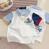 Top Bebê Menino 2026 Verão Novo Manga Curta Crianças Pequenas, Médias e Grandes Meninos Estiloso Desenho Animado Letra Polo Manga Curta